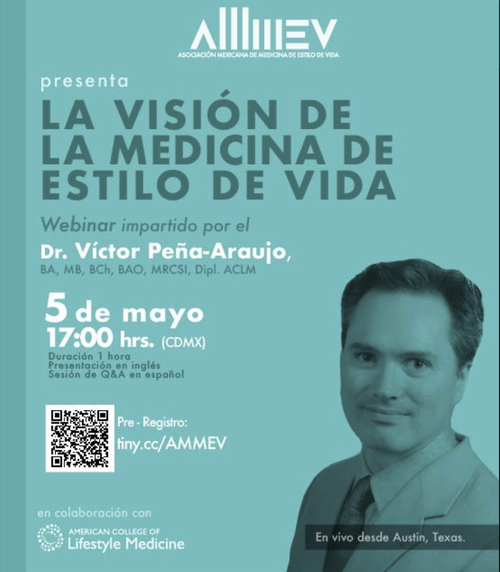 SPRING, 2020, AUSTIN, TEXAS. The founders of the newly-established Mexican association of lifestyle medicine have kindly invited Dr. Peña to address their growing group of healthcare professionals. The AMMEV (Asociación Mexicana de Medicina de Estilo de Vida), in partnership with the American College of Lifestyle Medicine Speakers Bureau, have coordinated to invite Dr. Peña as their keynote speaker for their May 5th webinar.