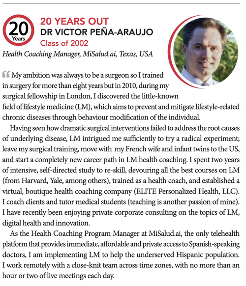 SUMMER 2022, DUBLIN, IRELAND. The Royal College of Surgeons in Ireland's alumni magazine recently reached out to a few of its past graduates for a retrospective piece featuring their varied career paths. They found Victor's story, which is 20 years past the point of his graduation, worth sharing in this year's issue published both digitally, and in-print and distributed world-wide.